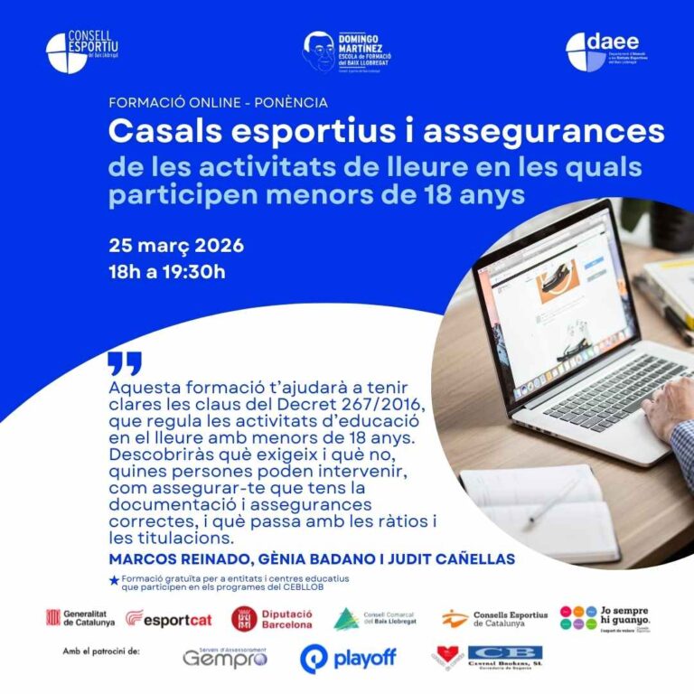 Forma’t amb el Consell Esportiu del Baix Llobregat! Descobreix els nostres cursos i formacions per créixer en el món de l’esport.