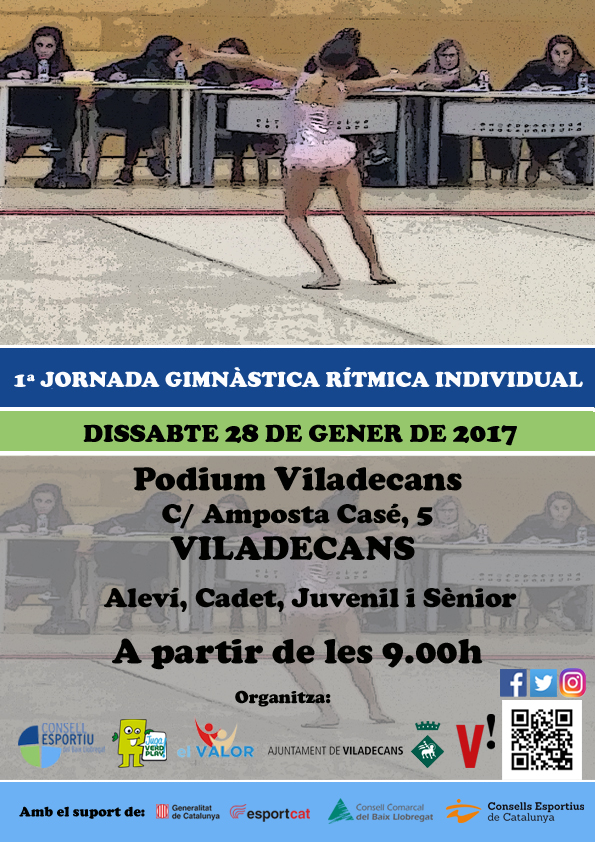 Us informem que des del dia d’avui i fins el proper dilluns 23 de gener inclòs, podeu realitzar les vostres inscripcions a la 1ª Jornada Comarcal de Gimnàstica Rítmica Escolar (modalitat individual) que tindrà lloc el proper dissabte 28 de gener al Podium de Viladecans.