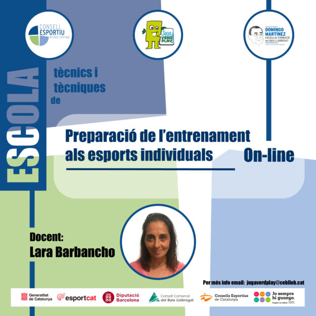 6a càpsula formativa online per a tècnics i tècniques d’ ESPORTS INDIVIDUALS: “Preparació de l’entrenament als esports individuals” a càrrec de Lara Barbancho Llicenciada en Ciències de l’Activitat Física i l’Esport, Professora de CAFE a EUSES Terres de l’Ebre. Professora de CAFE i al doble grau de CAFE i FIsioteràpia a Tecnocampus (Pompeu Fabra)i entrenadora i Jutgessa nacional de Gimnàstica Rítmica).