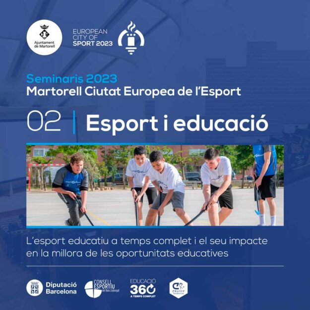 El proper 13 d’abril se celebrarà el segon dels seminaris, “L’esport educatiu a temps complert i el seu impacte en la millora de les oportunitats educatives” a l’Auditori Joan Cererols del Centre Cultural de Martorell.