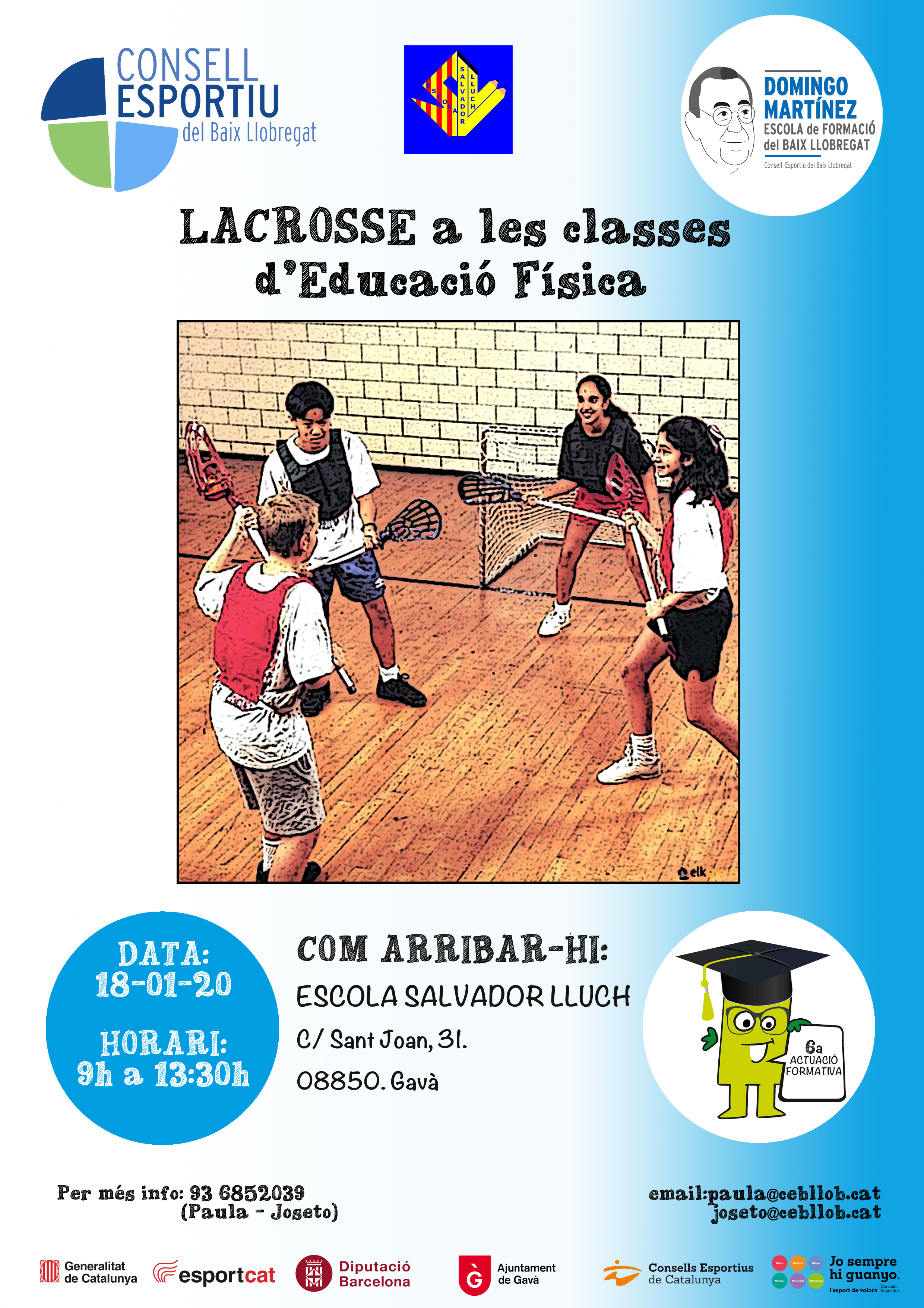 DetailsUs informem que les inscripcions per a la sisena actuació formativa ja estan obertes, serà el dissabte 18 de gener sobre “Lacrosse a les classes d’Educació Física” de 9 a 13:30h a Escola Salvador Lluch a Gavà amb un reconeixement de 4,5 hores del Departament d’Educació.