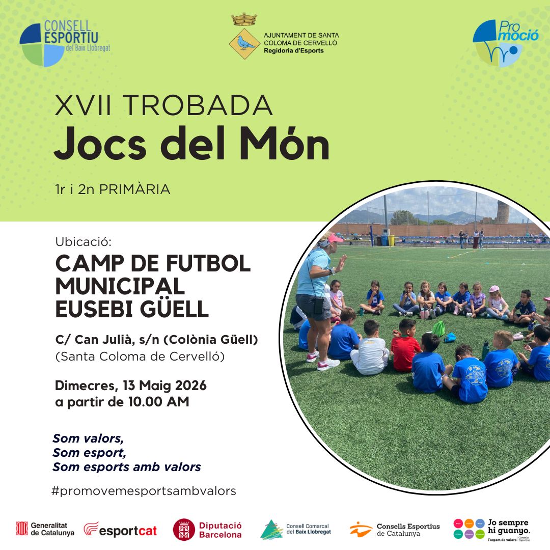 DetailsEl proper dimecres 13 de maig de 2026 a partir de les 10.00h tindrà lloc al Camp de Futbol Municipal Eusebi Güell de Santa Coloma de Cervelló, la Trobada de Jocs del Món