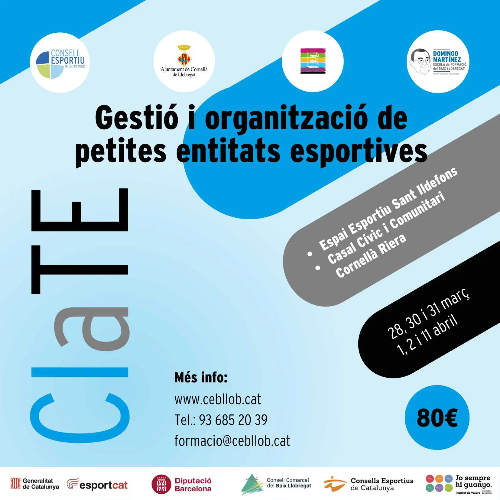 DetailsEl Consell Esportiu del Baix Llobregat i l’Ajuntament de Cornellà de Llobregat organitzen un Curs d’Iniciació a Tècnic/a d’Esports (CIaTE) de “Gestió i organizació de petites entitats esportives”.