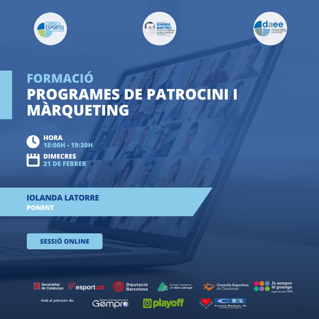 La nova formació del pla formatiu per a entitats esportives del Consell Esportiu del Baix Llobregat del curs 2023/2024 porta per nom Programes de patrocini i màrqueting. En aquest enllaç trobareu informació detallada de la sessió: Programes de patrocini i màrqueting. Programes de patrocini i màrqueting Objectius: Temàtiques a tractar: La inscripció és totalment gratuïta…