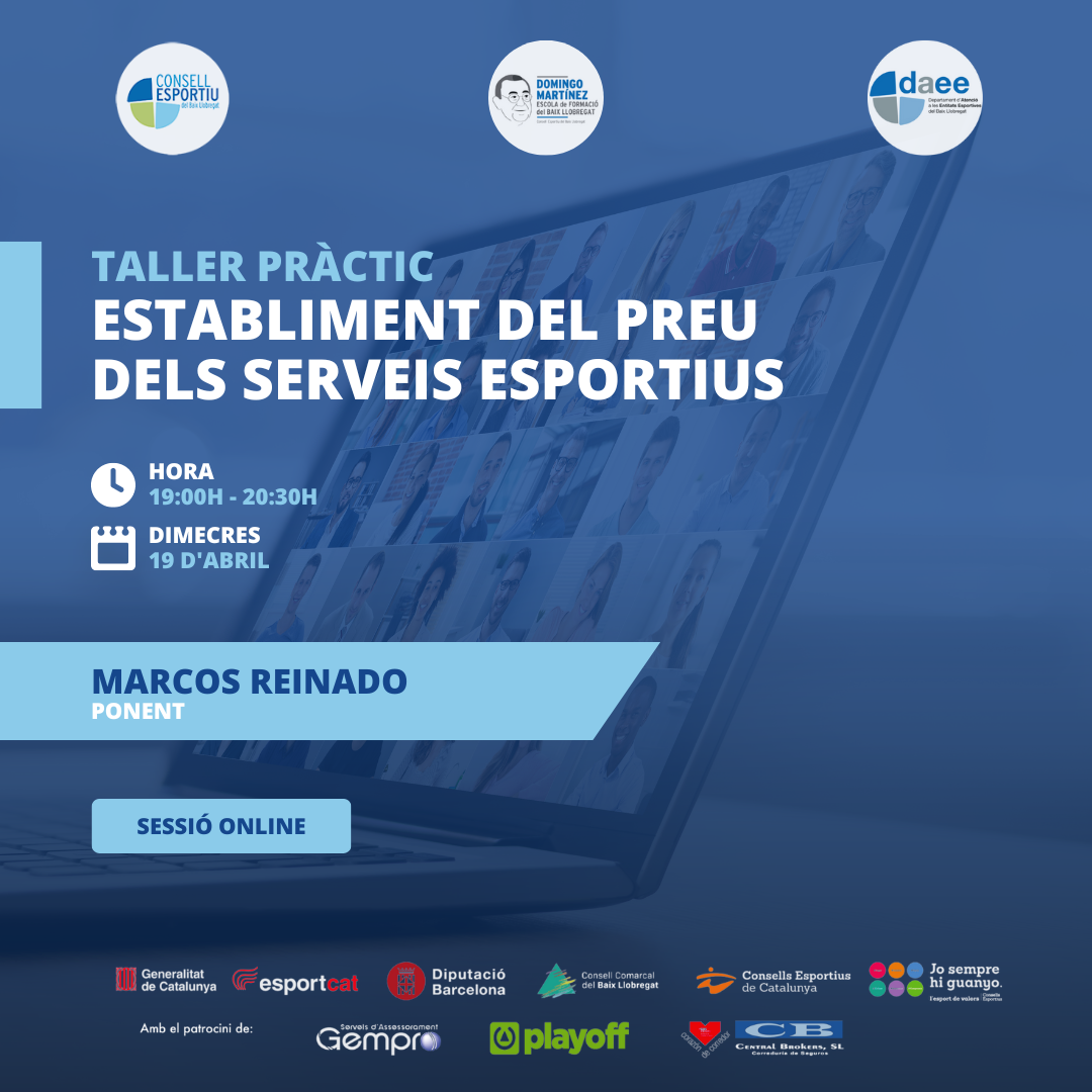 La nova formació en format pràctic del pla formatiu per a entitats esportives del Consell Esportiu del Baix Llobregat del curs 2022/2023 porta per nom L’establiment del preu dels serveis esportius. En aquest enllaç trobareu informació detallada de la sessió: Establiment del preu dels serveis esportius. Establiment del preu dels serveis esportius –  CAS PRÀCTIC…