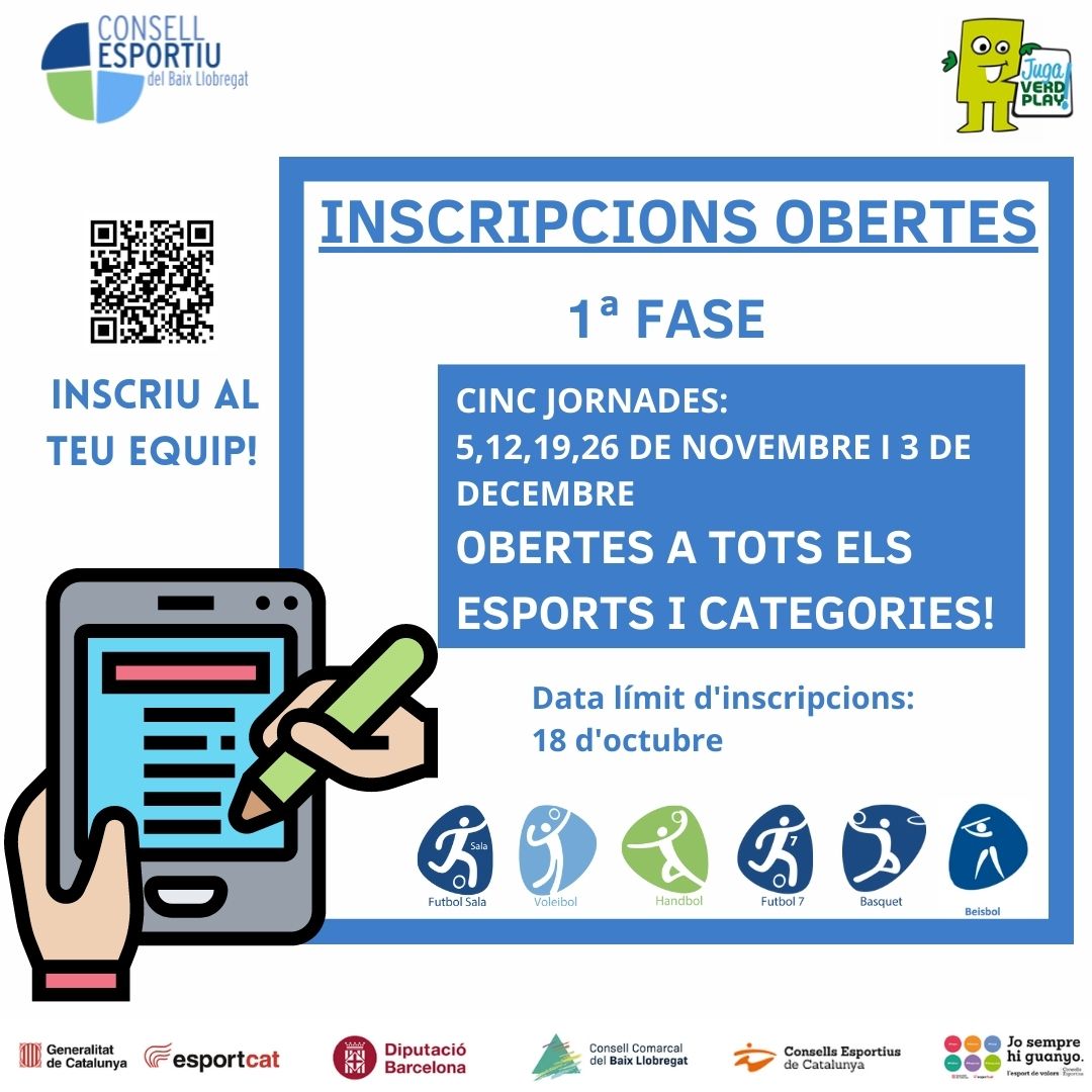 Des del Consell Esportiu del Baix Llobregat us informem que ja estan obertes les inscripcions a la 1a Fase per Esports d’Equip. Informació destadada del campionat i de com tramitar les inscripcions: La 1a Fase consta de 5 jornades (5 nov, 12 nov, 19 nov, 26 nov i 3 dec). El termini d’inscripció està obert fins…